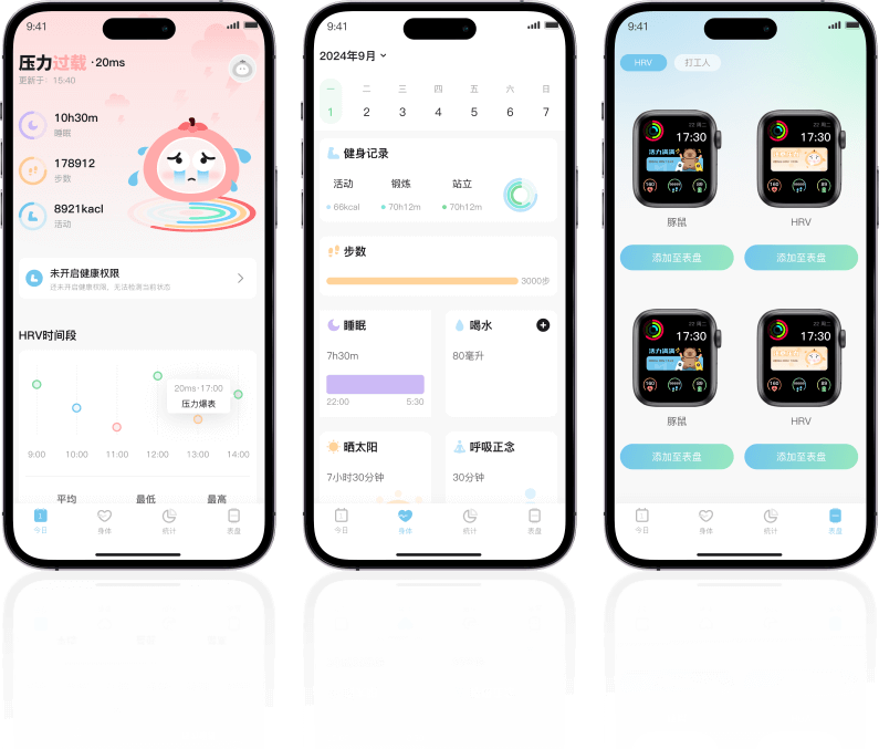 压力测试 | 睡眠分析 情绪记录 | 喝水